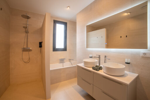 - Twee ruime badkamers: met een urinoir, toilet, wastafel met lades, inloopdouche, verwarmde spiegel en uitstekende toegankelijkheid voor rolstoelgebruikers.