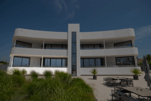 - Terras: met uitzicht op zee, voorzien van een tafel met stoelen, relaxkussens en lounge meubels.